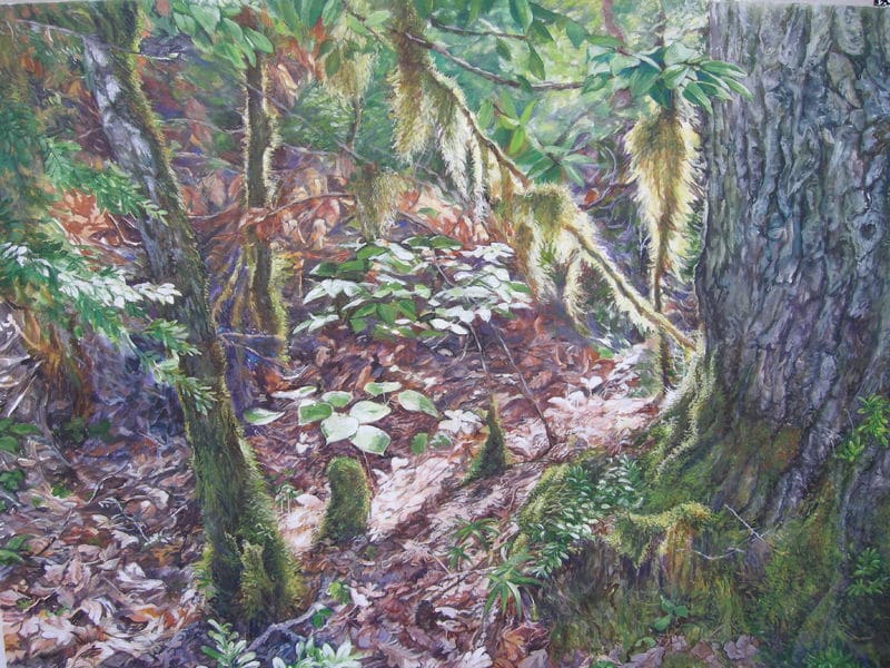 Juliet Schlunke fait beaucoup d’études d’arbres et de végétaux afin d’exprimer à travers ses œuvres, la nature qui l’a toujours fascinée. Ses peintures représentent des natures mortes accentuées par sa volonté de nous montrer comment les choses devant lesquelles on passe sans les regarder sont belles. D’inciter les gens à s’arrêter pour en apprécier les détails.