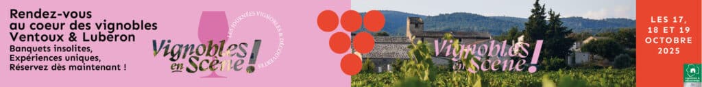 Du 17 au 19 octobre 2025, le Luberon et le Ventoux s’unissent pour la première édition de Vignobles en Scène. Trois jours d’expériences autour du vin, de la gastronomie et de la convivialité. Bref, le programme parfait pour se vider la tête, se régaler et profiter des belles journées d’automne.