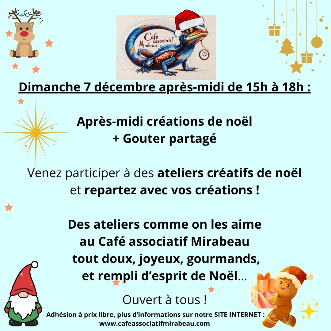 Ateliers créatifs et goûter de Noël du café associatif de Mirabeau