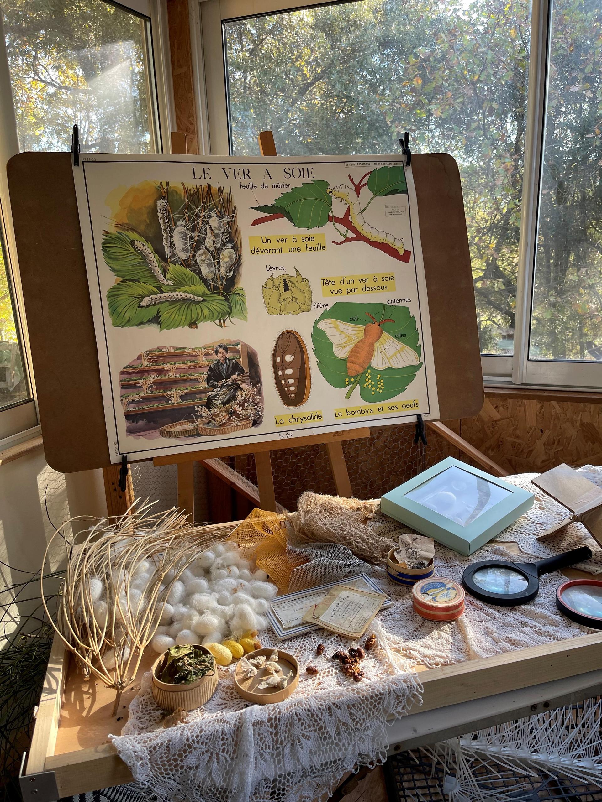 Observez les vers à soie à chaque étape de leur développement, découvrez leur environnement et participez aux gestes essentiels de leur élevage : nourrissage, soins et manipulation. Ici, tout se vit et s’expérimente, au plus près de la matière.