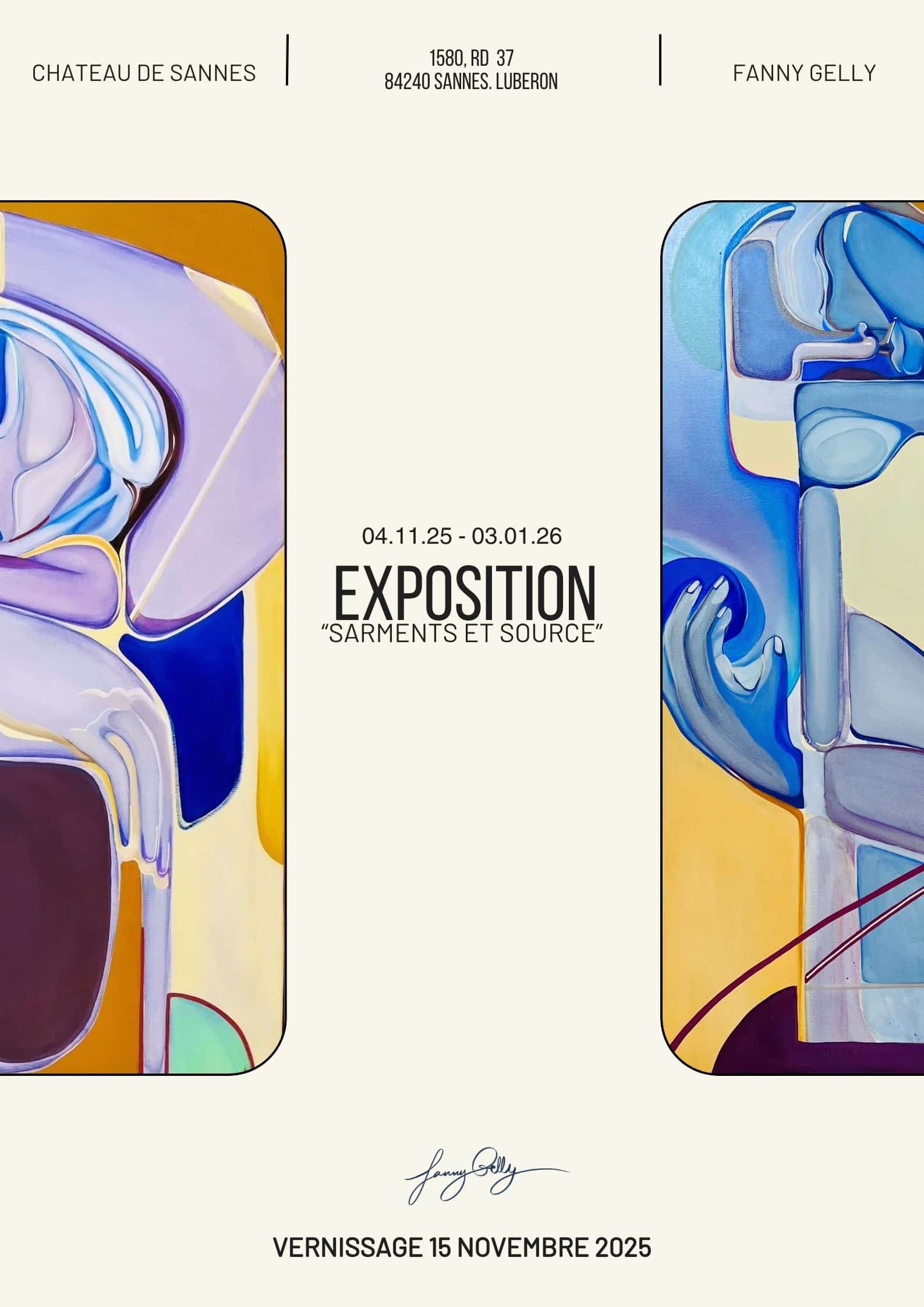 Au cœur des vignes et des collines du Luberon, le Château de Sannes accueille cet automne l’exposition « Sarments et Source », une plongée sensible dans l’univers pictural de Fanny Gelly, artiste dont la pratique oscille entre graphisme automatique, matière mémorielle, et spiritualité.