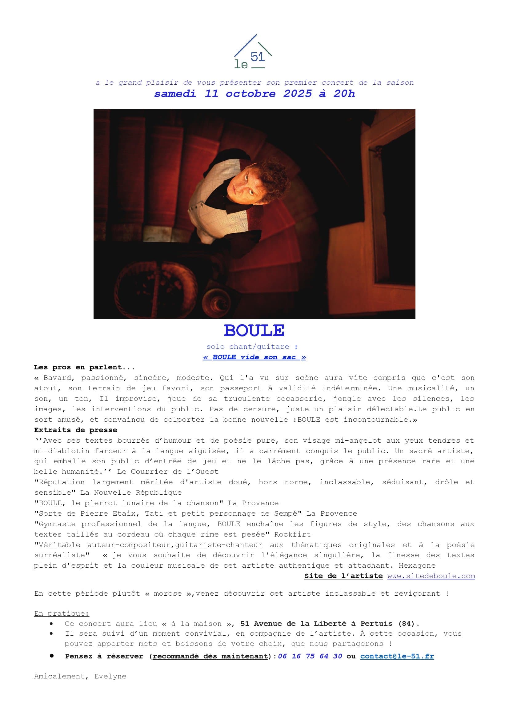 – Samedi 13 juin à 20h00 (Amélie Les Crayons)