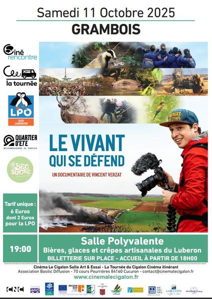 11 octobre – 19h : Ciné-rencontres, salle polyvalente de Grambois – Entrée 6€, tarif unique.