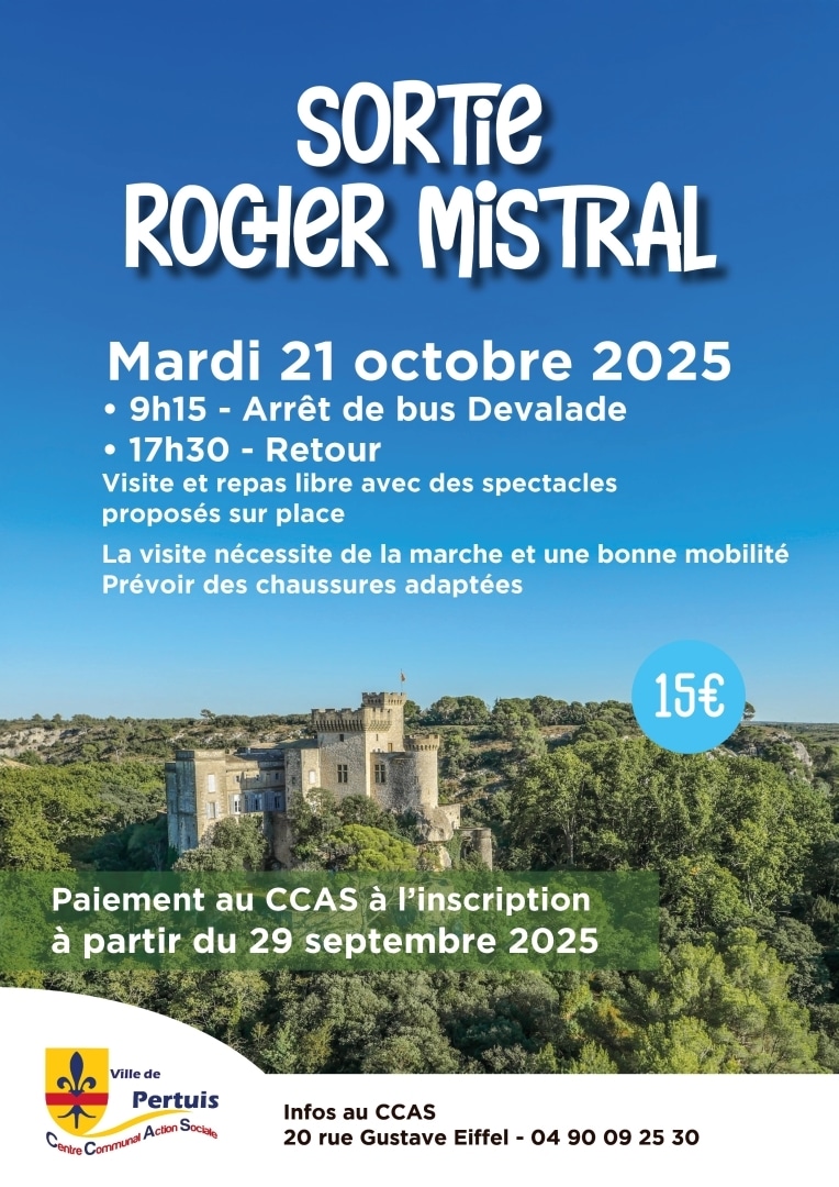 Le CCAS propose le 21 octobre une sortie au Rocher Mistral au Château de La Barben.
