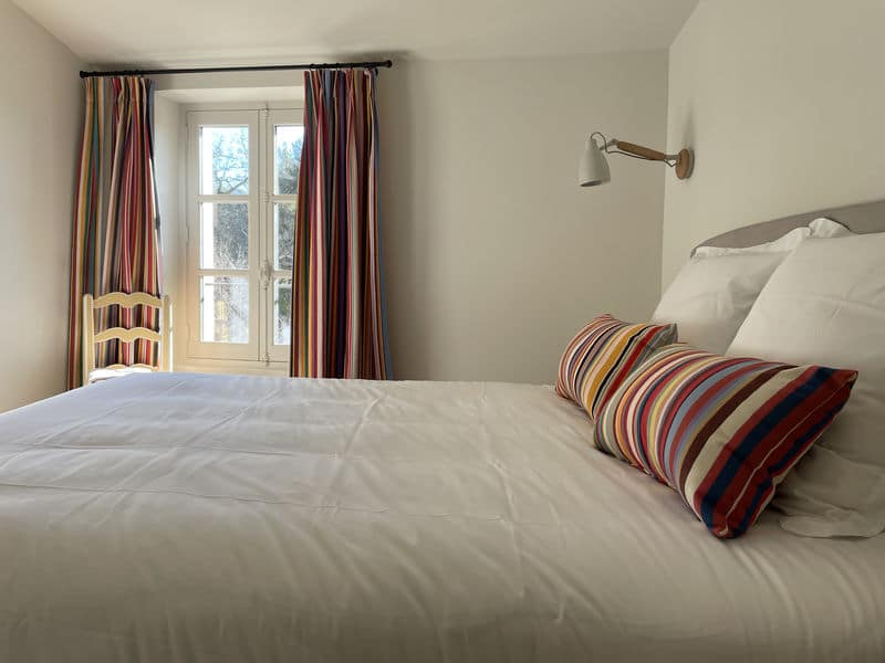 Accès par un escalier extérieur puis intérieur. Grand salon-salle à manger-cuisine, deux chambres (lit 160 et 2 lits 90) donnant sur les jardins du château, une salle de douche, toilettes séparées, buanderie (lave-linge).