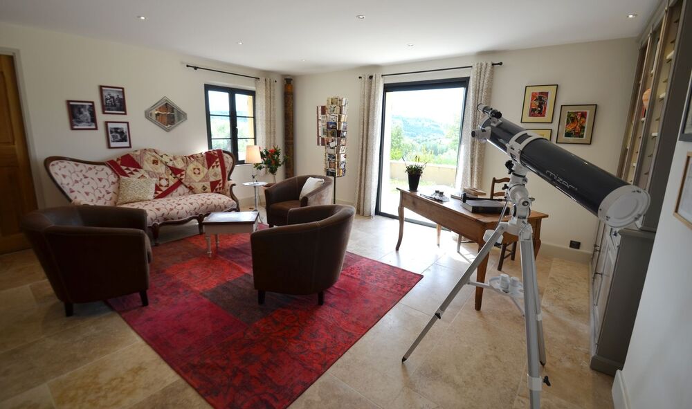 De par sa situation dominante, le mas bénéficie d’une vue complètement dégagée, propice à l’observation du ciel, et a été agrémenté de nombreuses ouvertures, vous permettant de vous fondre dans tous les paysages aux alentours.
