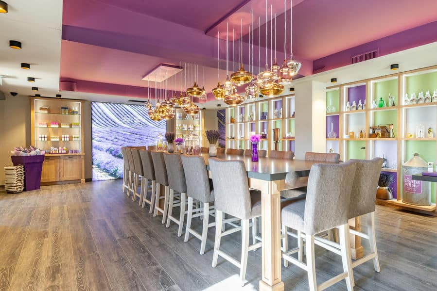 -La boutique du Musée, Le Château du Bois Provence est une belle invitation sensorielle pour apprécier la véritable lavande fine avec une riche gamme de cosmétiques de soins bio et végan, pour le visage et le corps, des parfums de créateur et savons pur végétal, mais aussi tisane, miel, bouquets de lavande séchées. Tout est issu de la production du Domaine lavandicole Le Château du Bois, propriété de la famille Lincelé. Depuis 5 générations, ils sont producteurs et distillateurs de lavande fine en Haute Provence et garantissent une traçabilité totale de la graine, à la fleur, au champ de lavande jusqu’à l’huile essentielle avec des méthodes agricoles durables. La marque Le Château du Bois Provence® met à l’honneur la lavande fine dans chaque produit phyto-cosmétique afin de retrouver les vertus médicinales de la vraie lavande de Provence, lavandula officinalis Chaix, seule et unique fleur à être protégée par une AOP et seule variété de lavande à être citée dans la pharmacopée européenne. L’identité olfactive de l’huile essentielle de lavande fine signe une collection de parfums de niche unique, dont la créatrice Elisabeth Proal sublime la fraicheur et la douceur aromatique de la lavande en l’associant à de belles matières naturelles. L’espace boutique est élégamment décoré avec une présentation des gammes de produits pour tester les textures et les actifs végétaux. L’accompagnement et les conseils de l’équipe du Château du Bois sont appréciés pour la qualité des explications et le soin apporté dans les présentations cadeaux. Ils vont serviront aussi selon la saison la tisane de lavande, le lavender iced-tea ou de diabolo lavande ! A découvrir le la nouvelle boutique en ligne du Musée www.museedelalavande.com
